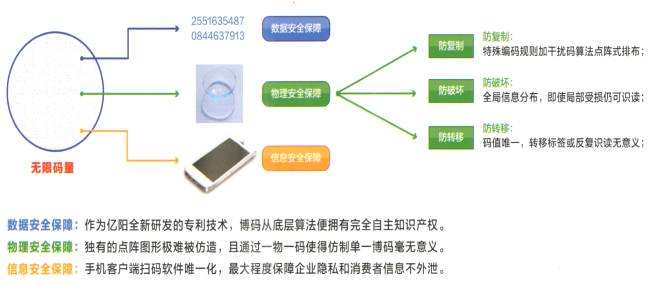 制假造假“零”存在?;诓┐a在數(shù)據(jù)層、物理層和信息層的高安全性,博碼本身不易被復(fù)制、破壞和轉(zhuǎn)移。博碼云平臺可全面保障博碼的附著印刷從系統(tǒng)數(shù)據(jù)庫直接推送和管控,無人為接觸可能,從源頭斬斷了造假分子的造假行為。