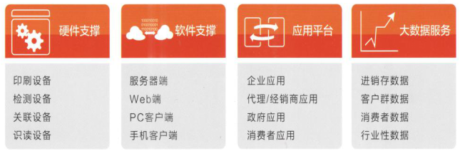 在我公司建立服務(wù)器存放薄碼云數(shù)據(jù),給每個客戶劃撥相應(yīng)空間,數(shù)據(jù)獨立;在藥品食品用包裝新材料上附著可變博碼,通過智能手機掃碼形成藥品、食品客戶企業(yè)與消費者的互通關(guān)系,對所包裝產(chǎn)品進(jìn)行“防偽查詢+過程追溯”的全程質(zhì)量安全保證,從而實現(xiàn)防偽、防竄、溯源等一系列應(yīng)用及產(chǎn)品全過程信息化,同時可根據(jù)客戶需求,額外提供大數(shù)據(jù)一系列應(yīng)用增值服務(wù)如建立營銷MIS系統(tǒng)、完整的信息化體系等。
